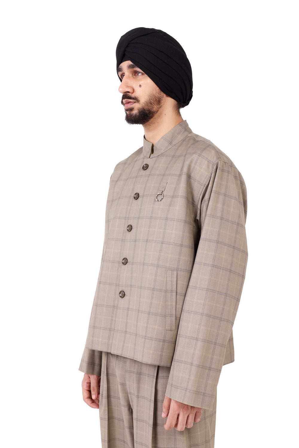 Beige Check Nehru Jacket