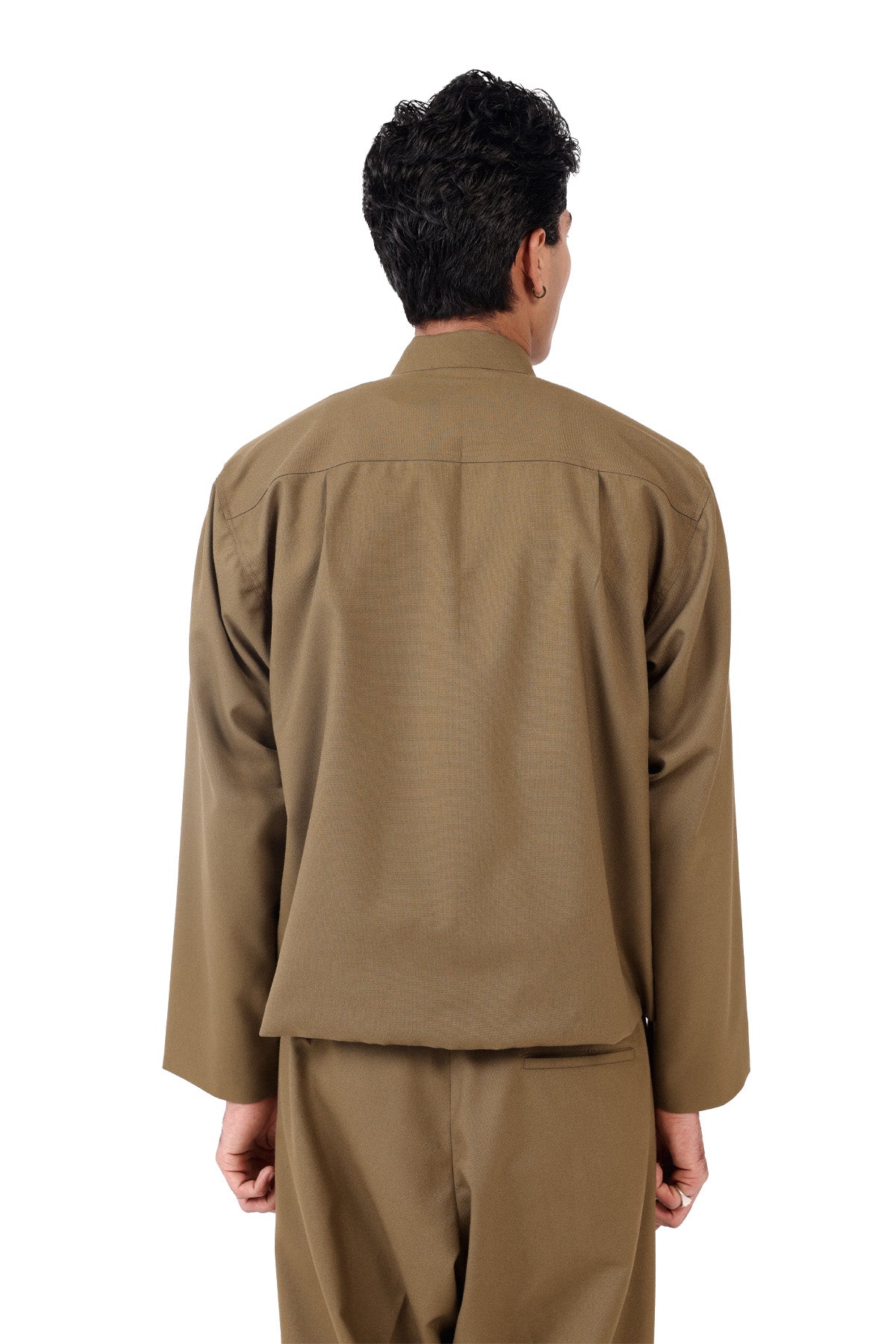 General Jacket with embroidery details and custom button loops closure, oversized fitting with a slight crop. Distinctive lahoS logo detail on left side.
