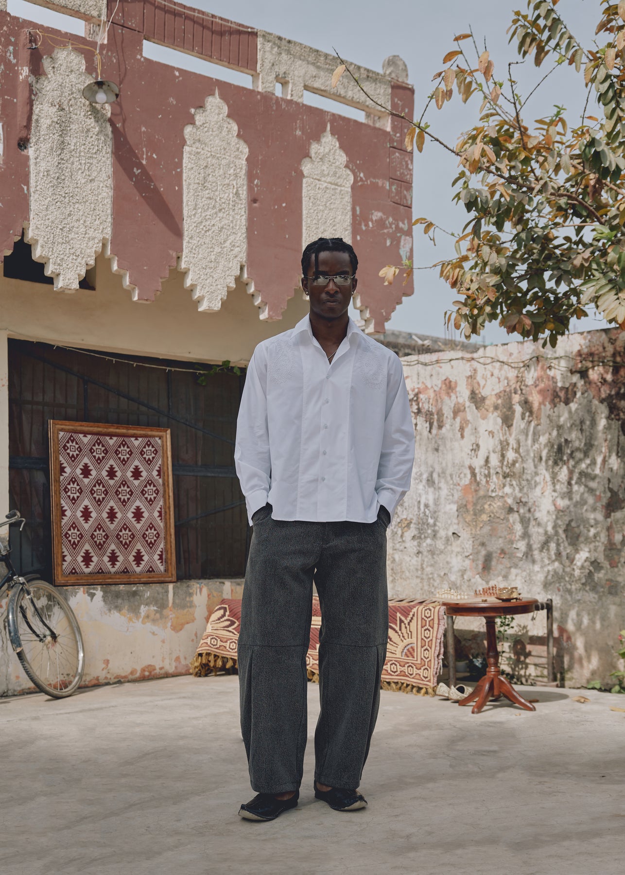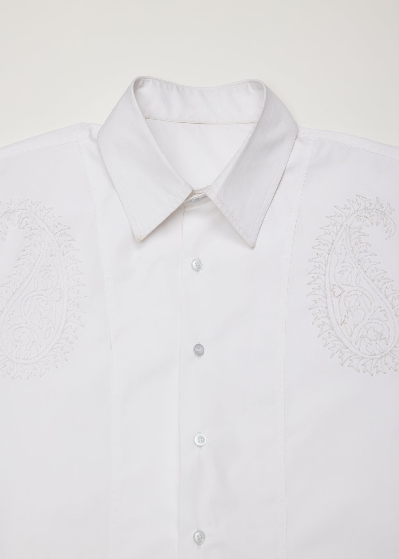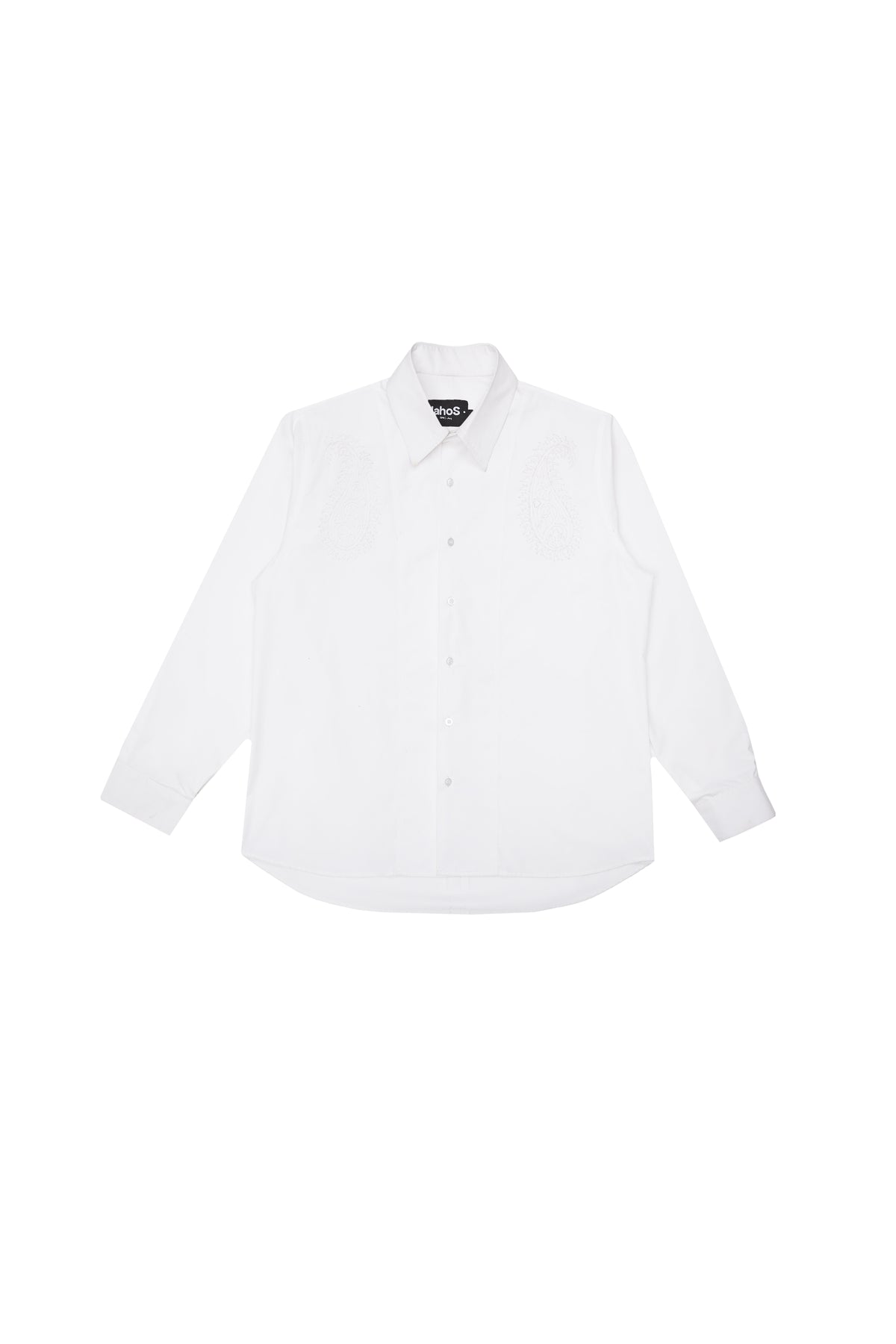 Loose baggy shirt with a panel at the front and embroidery detail on the chest.